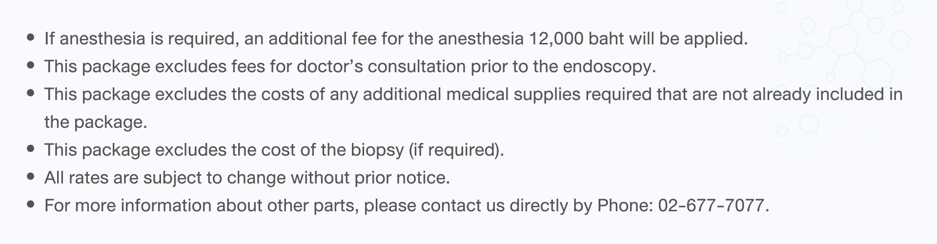 Terms and conditions for Gastroscopy and Colonoscopy Package: