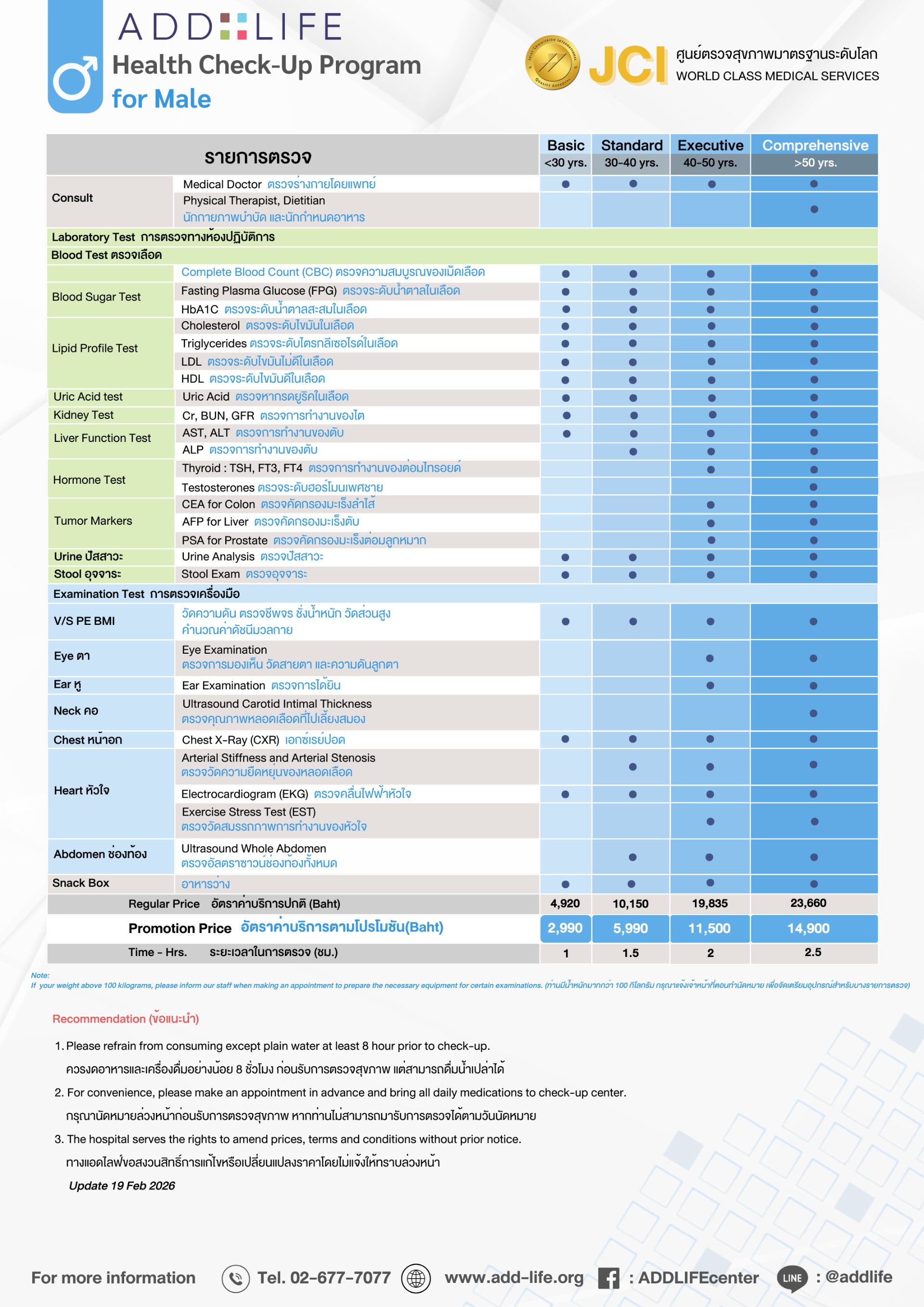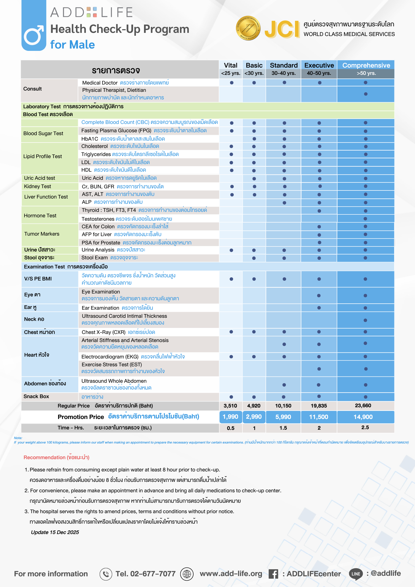 ProgramsHealth Check-Up Packages At ADDLIFE, BangkokMen’s Health Check-Up Program Services Menu Health Check-Up Packages At ADDLIFE, Bangkok Lady’s Health Check-Up Program Men’s Health Check-Up Program Premium Health Check-Up Program Ultimate Health Check-Up Program Ultimate Plus Health Check-Up Program Advanced Check-Up Programs Advanced Heart Check-Up Program Advanced Brain Check-Up Program Advanced Cancer Program Screening Equipment Magnetic Resonance Imaging (MRI) CT Scan Ultrasound X-Ray Mammogram DEXA Scan Electrocardiograph EKG Echocardiogram Exercise Stress Test (EST) Arterial Stiffness Measurement (Vascular Screening) Fibroscan Men’s Health Check-Up Program Back to Programs See which program works best for you Consult Us